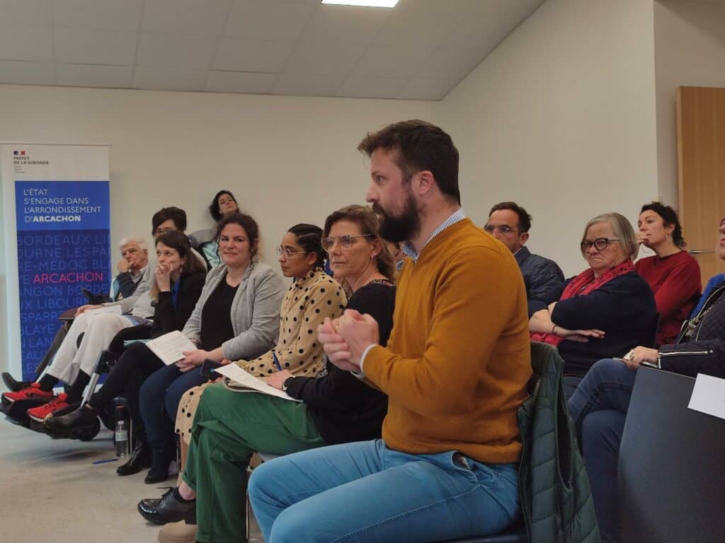 Sophie Panonacle, députée Ronan Leaustic, Sous-préfet d’Arcachon et différents acteurs du secteur du handicap étaient réunis autour du sujet de “l’insertion sociale et professionnelle des personnes en situation de handicap”.
