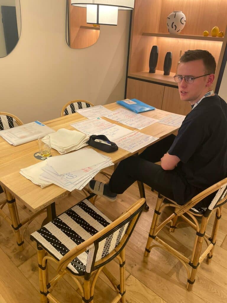 Démarre alors un intense programme d’entraînement avec un travail quotidien de répétition des gestes techniques, supervisé par sa coach Guyleine Lacour, monitrice d’atelier à l’ESAT Pessac Magellan. Une zone réservée au service à table est mise en place au restaurant Le Magellan pour permettre à Andrew de travailler en condition d’épreuve.
