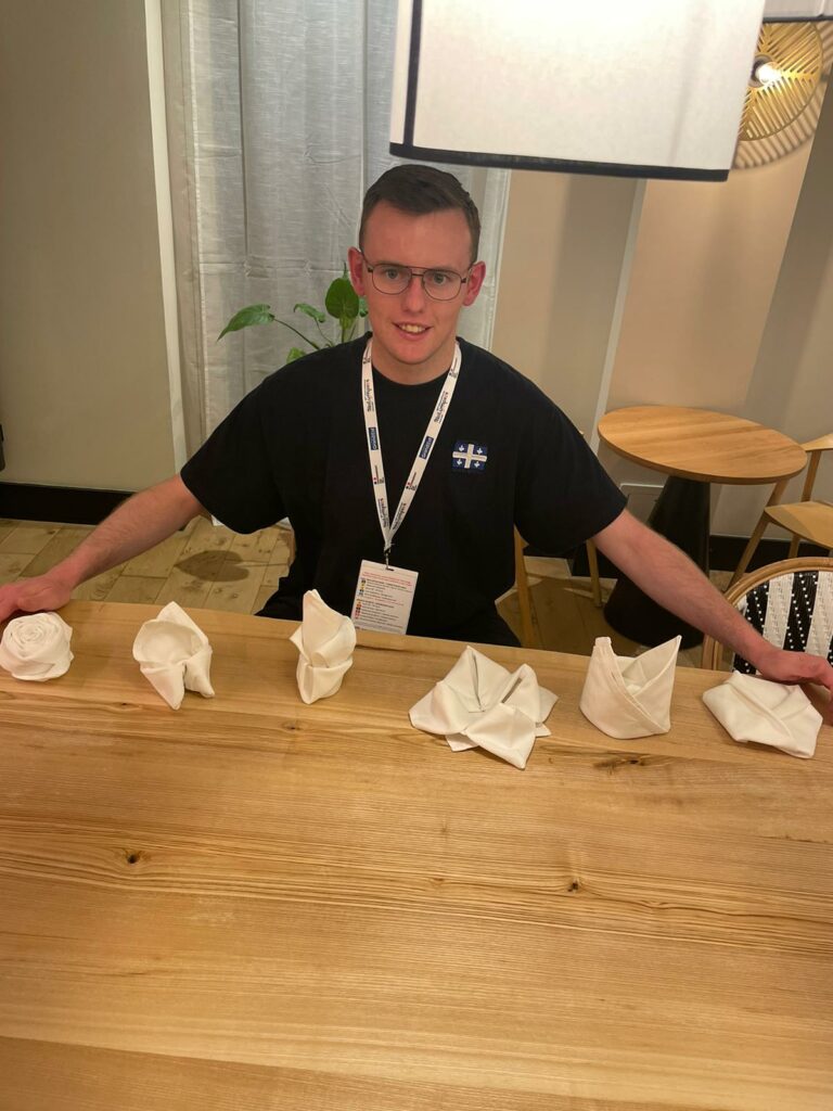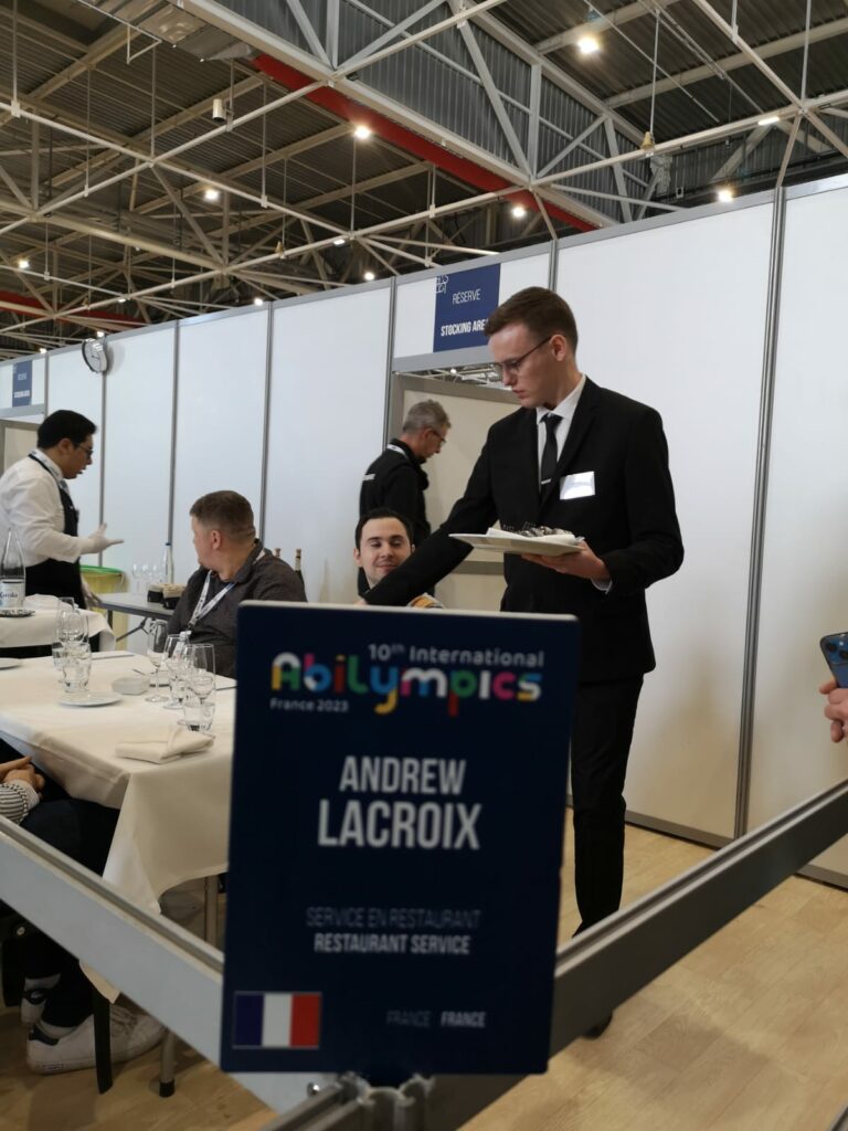“A l’issue de cette compétition, je souhaite poursuivre mon Titre Professionnel “serveur en restaurant”, que je prépare avec une Accompagnatrice VAE de l’ESAT Pessac Magellan, et Guyleine, ma monitrice d’atelier.