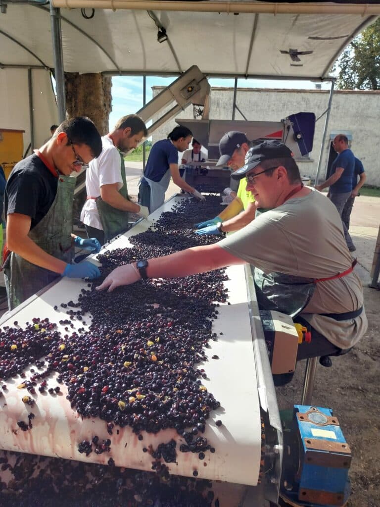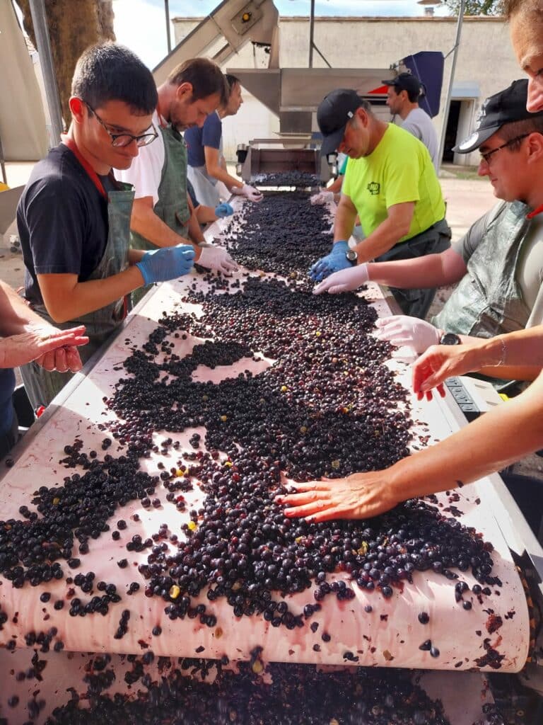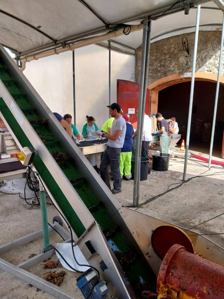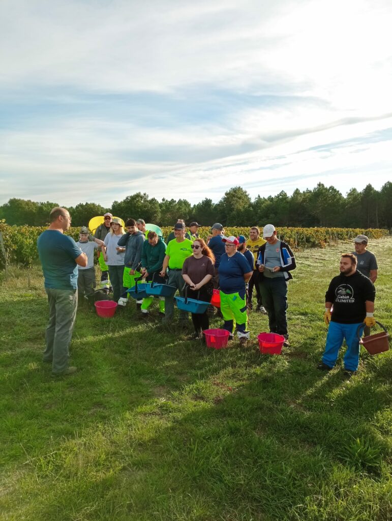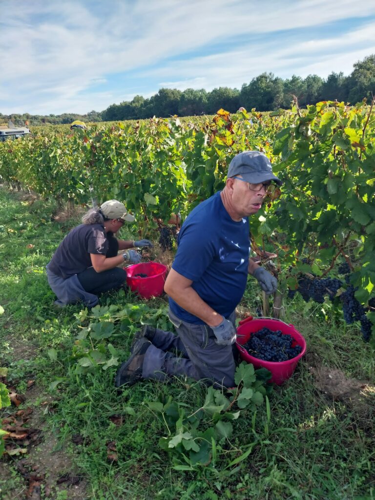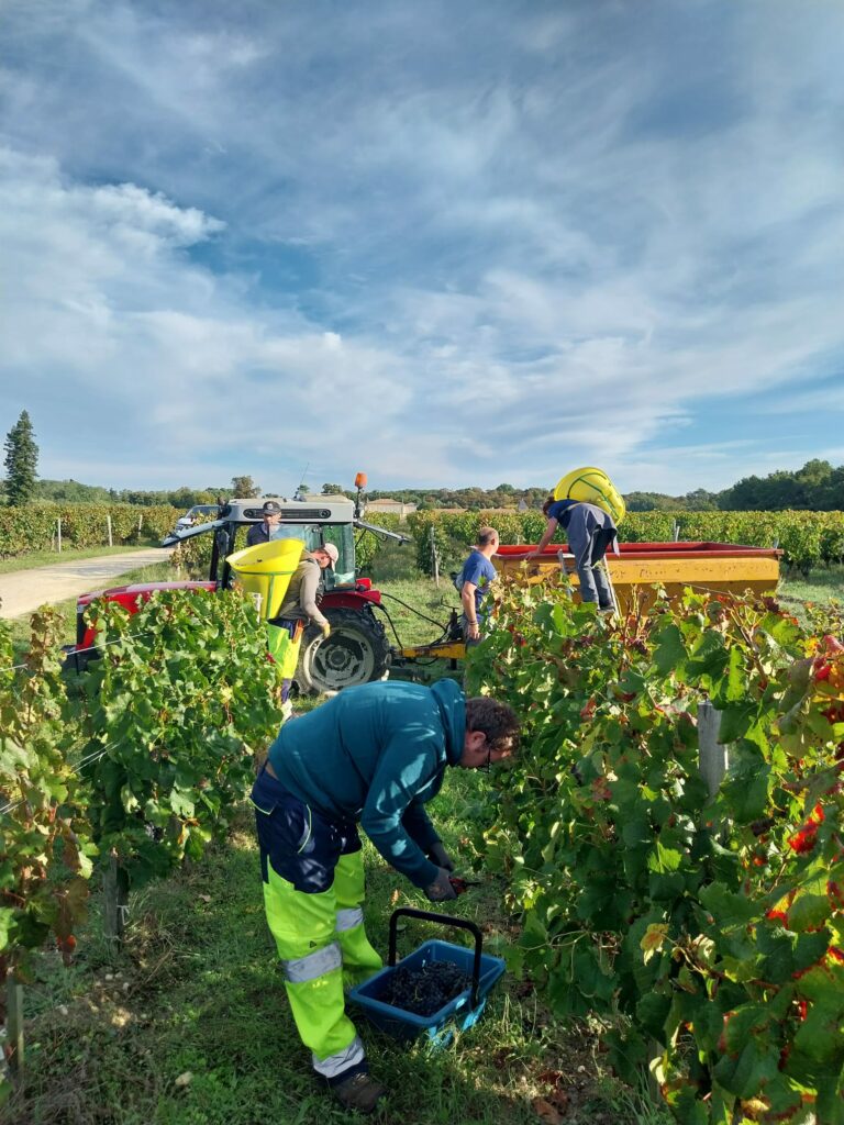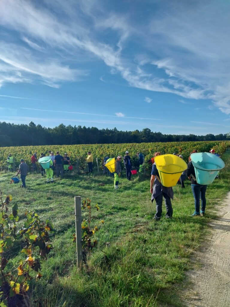 En plus du matériel, les vendangeurs étaient dans les starting block… Un seul mot pour définir leur état d’esprit : surmotivé ! Ce matin, c’est une équipe du tonnerre qui ramassait des grappes riches en raisin. Cette année, les baies sont juteuses, sucrées, colorées, les paniers et les hottes se remplissent à vue d’œil. En clair, des pronostics très optimistes !