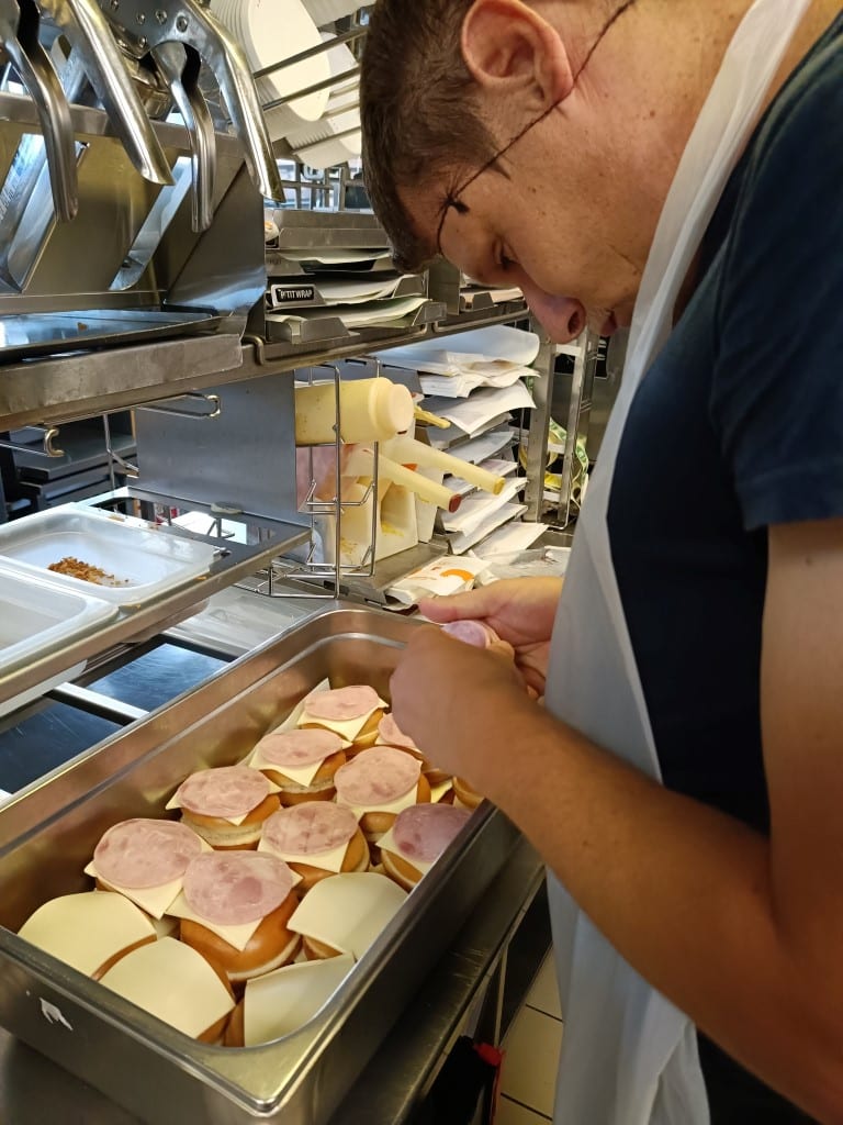 En juillet, le programme estival de deux équipes de travailleurs de l’ESAT de Braud et Saint-Louis (Haute-Gironde) s’est ponctué par un passage au McDonald’s St Martin Lacaussade – Blaye, pour une immersion totale au sein de la grande chaîne de restauration rapide !