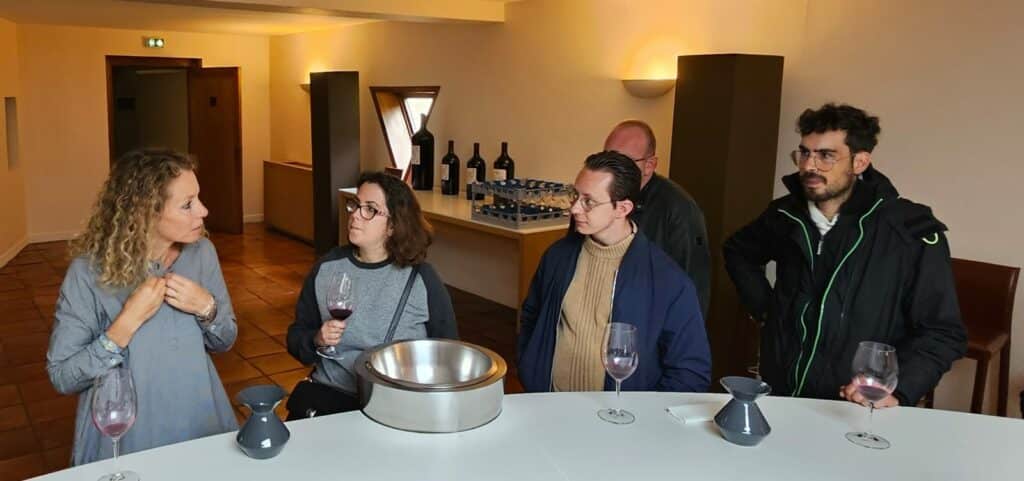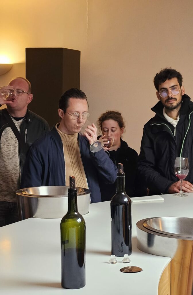 Depuis l’ouverture du Restaurant des Lacs en 2020, les professionnels de la Compagnie Médocaine des Grands Crus, négociant en vins basé à Blanquefort, viennent régulièrement au restaurant. En observant chaque jour les travailleurs dans leur environnement, une idée a germé : pourquoi ne pas inverser les rôles et offrir aux travailleurs une immersion dans le domaine viticole ?