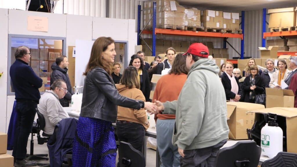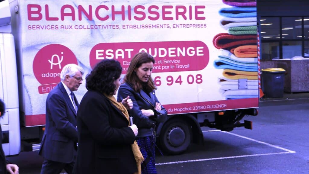 Le lundi 20 janvier, l’ESAT Adapei 33 d’Audenge a eu l’honneur d’accueillir Madame Charlotte Parmentier-Lecocq, Ministre déléguée auprès de la Ministre du Travail, de la Santé, de la Solidarité et des Familles, chargée de l’Autonomie et du Handicap. Cette visite officielle, organisée à l’initiative de Madame la Députée Sophie Panonacle, a permis de mettre en valeur les initiatives innovantes de l’Adapei 33 en matière d’inclusion et d’accompagnement des personnes en situation de handicap.