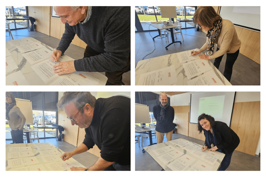 Suite à ce bilan, Philippe Béguerie, président, Isabelle Jamet, directrice générale et l’ensemble des directions d’établissement de l’Adapei 33 Entreprise ont signé la charte d’engagement de l’Unapei & Entreprises, fiers de bien faire. Cette charte s’appuie sur 4 axes fondamentaux qui correspondent en tout point aux axes développés dans notre projet associatif 2024-2028 :