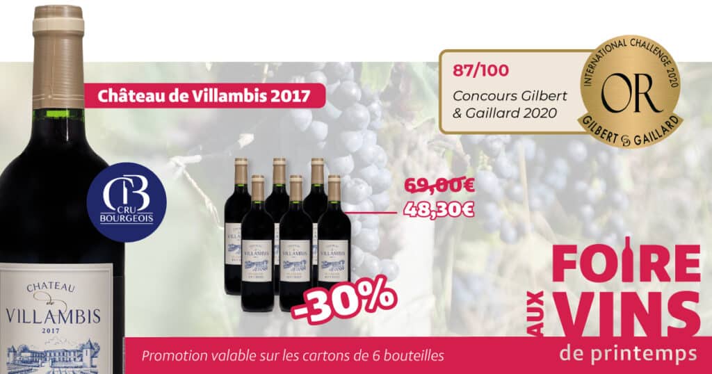 Le Château de Villambis 2017 s’invite pour la première fois à la sélection des millésimes à l’honneur sur cette Foire aux vins. Découvrez ou redécouvrez ce Haut-Médoc fruité et à pleine maturité dès maintenant, à 30% de réduction pour l’achat d’un carton de 6 bouteilles !