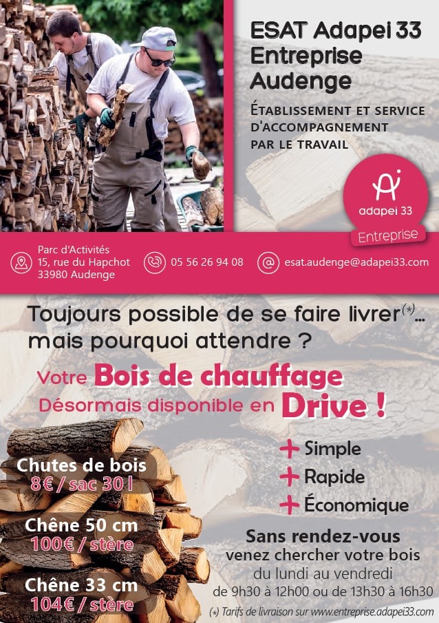 C’est ce que propose l’ESAT d’Audenge aux clients du Bassin d’Arcachon, avec plus de 1700 stères vendues par an.
