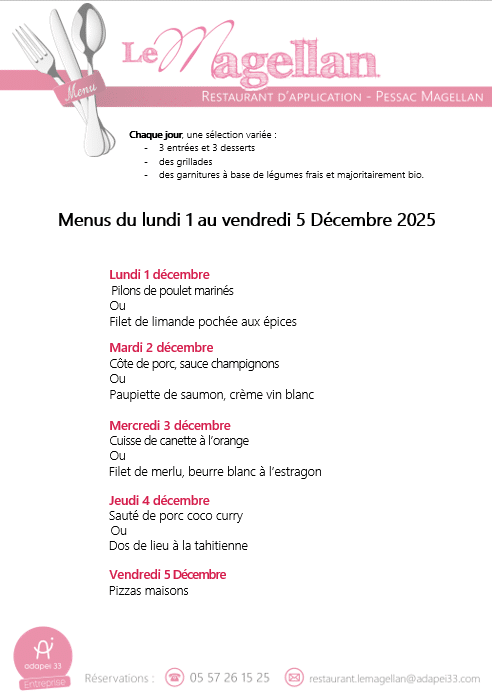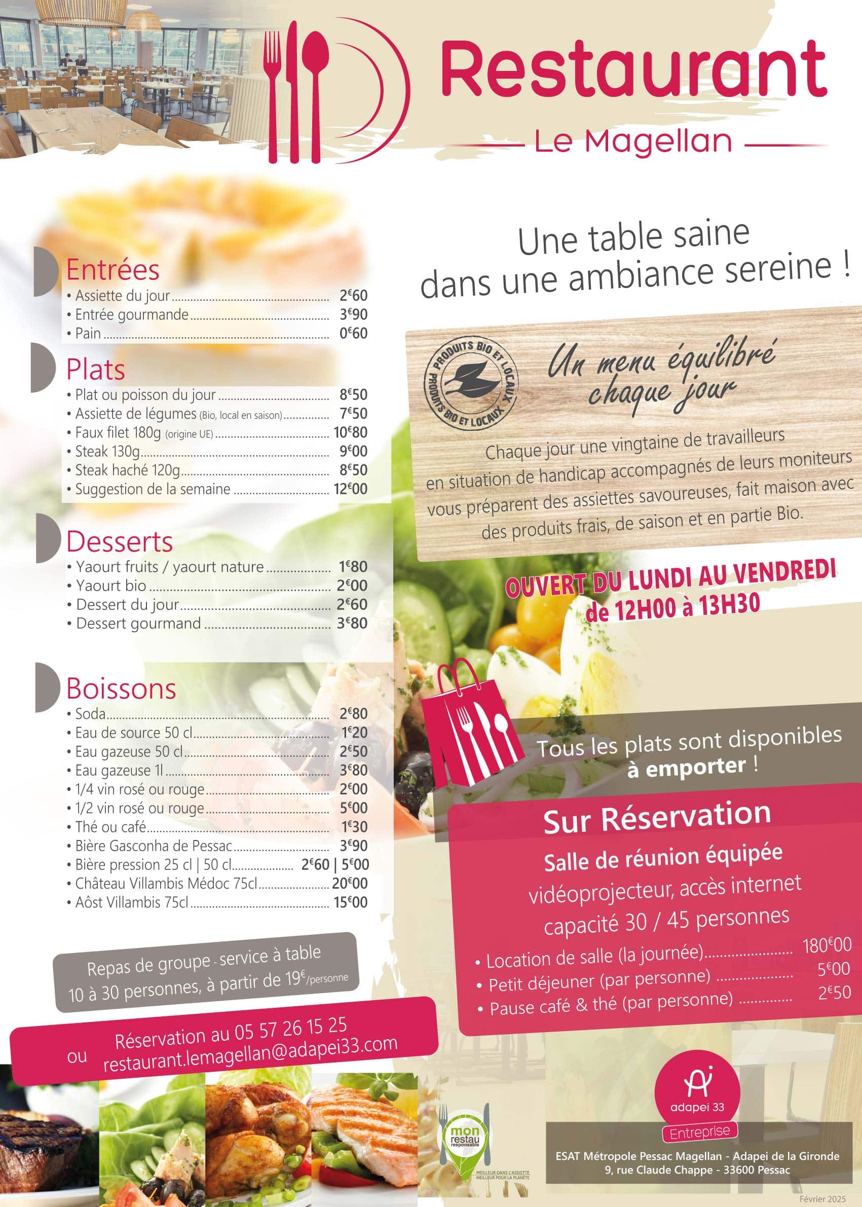 Le restaurant Le Magellan situé à Pessac propose aux entreprises la location d’une salle de réunion équipée (vidéo projecteur, wifi…) d’une capacité de 25 personnes.
